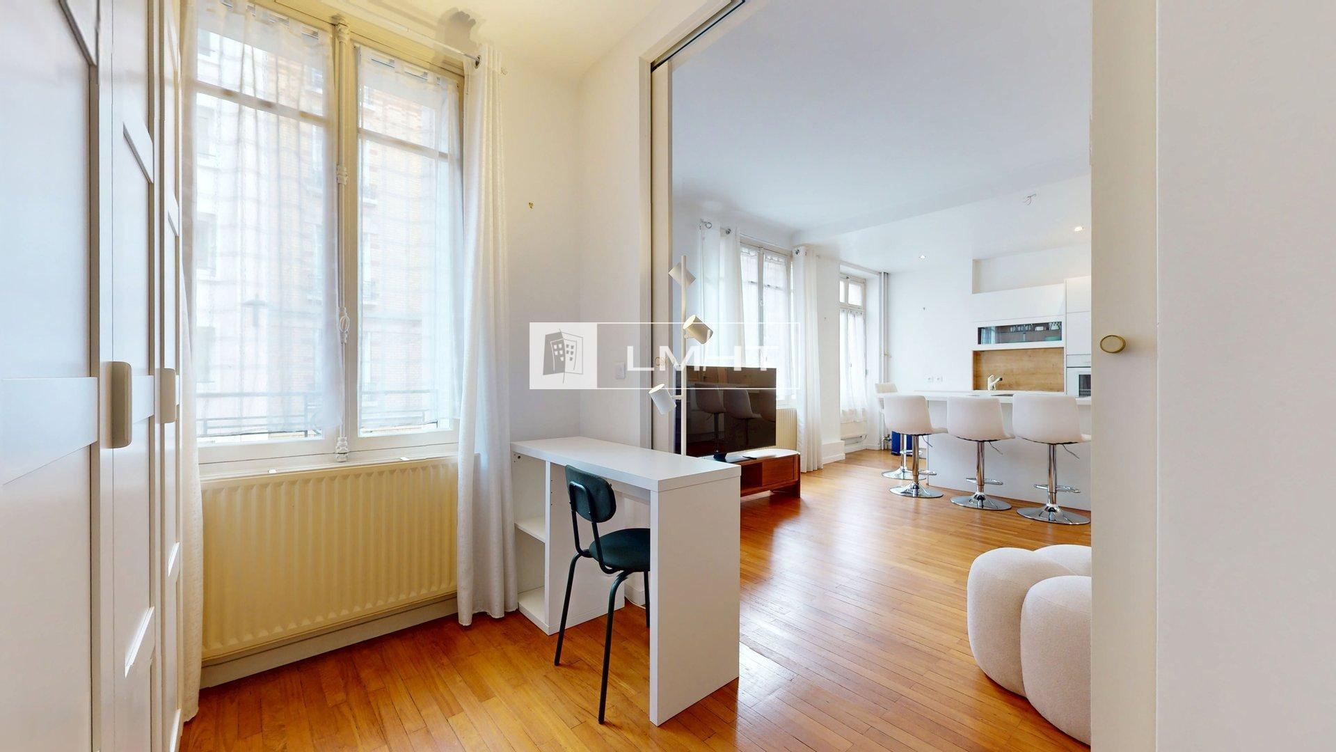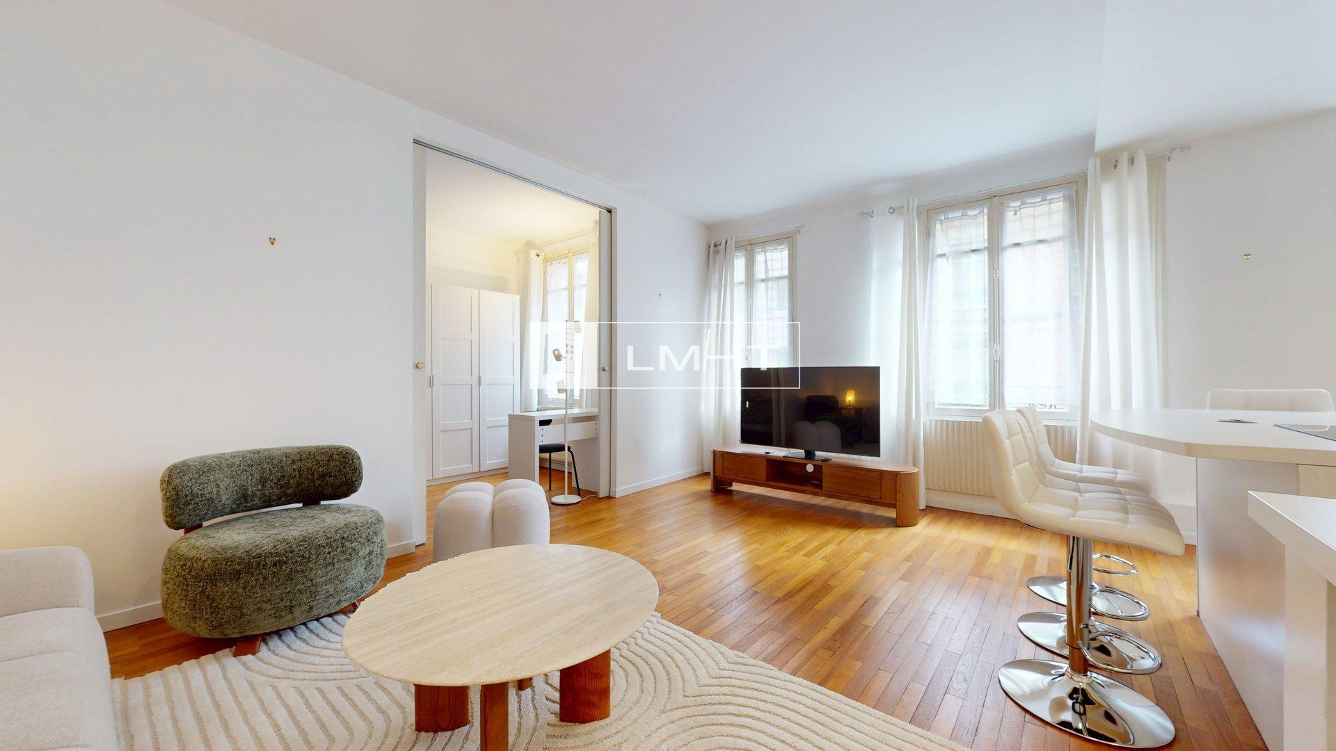 Paris (75016)LMHT, l'agence immobilière vous propose à la location cet appartement T2 meublé entièrement rénové de 49.30m² situé rue de Civry, Paris 16ème.