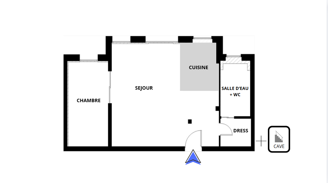 Appartement situé au 2ème étage d’un immeuble avec ascenseur, qui se compose : d’un séjour avec cuisine ouverte et équipée, d’une chambre (avec portes à galandages) comprenant 2 lits simples pouvant être réunis en un lit double de 180cm, ainsi que d’une salle d’eau avec WC.
