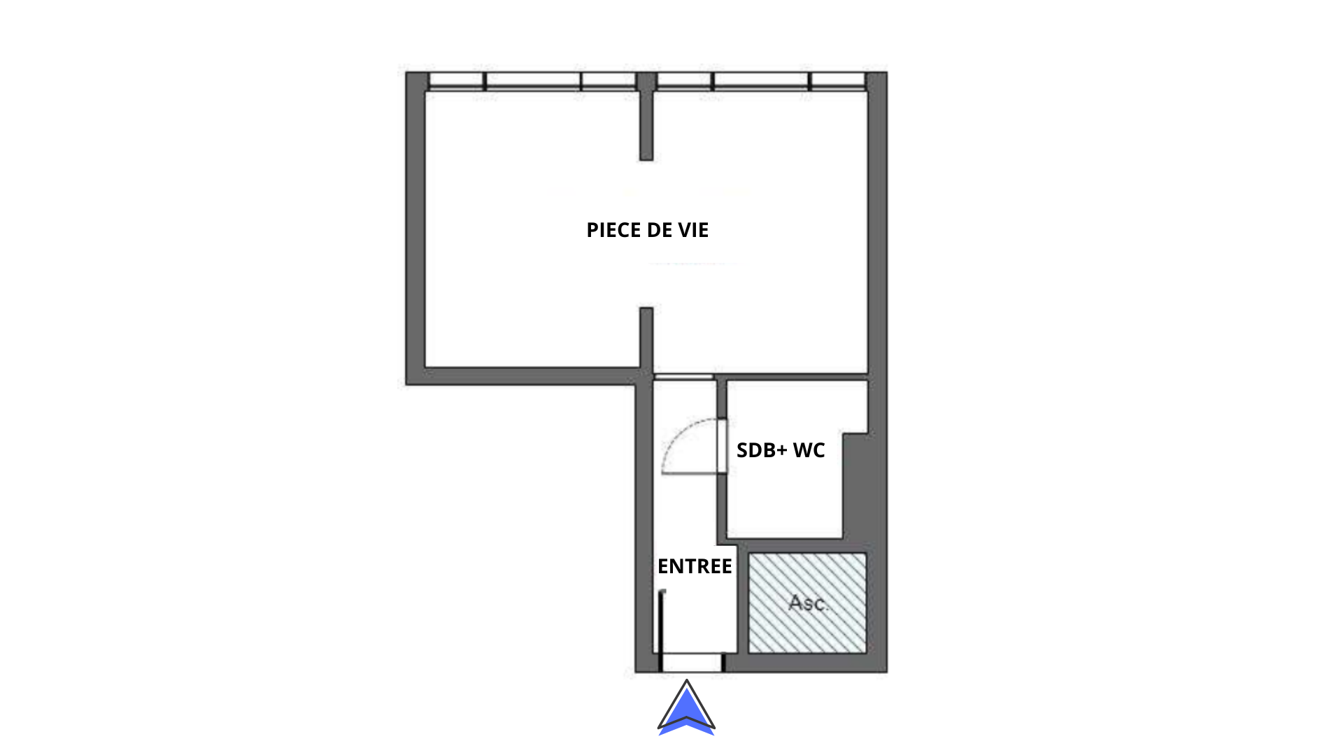 Au 2ème étage d'un immeuble avec ascenseur comprenant : une entrée, une pièce de vie avec coin cuisine et une salle de bain avec WC.