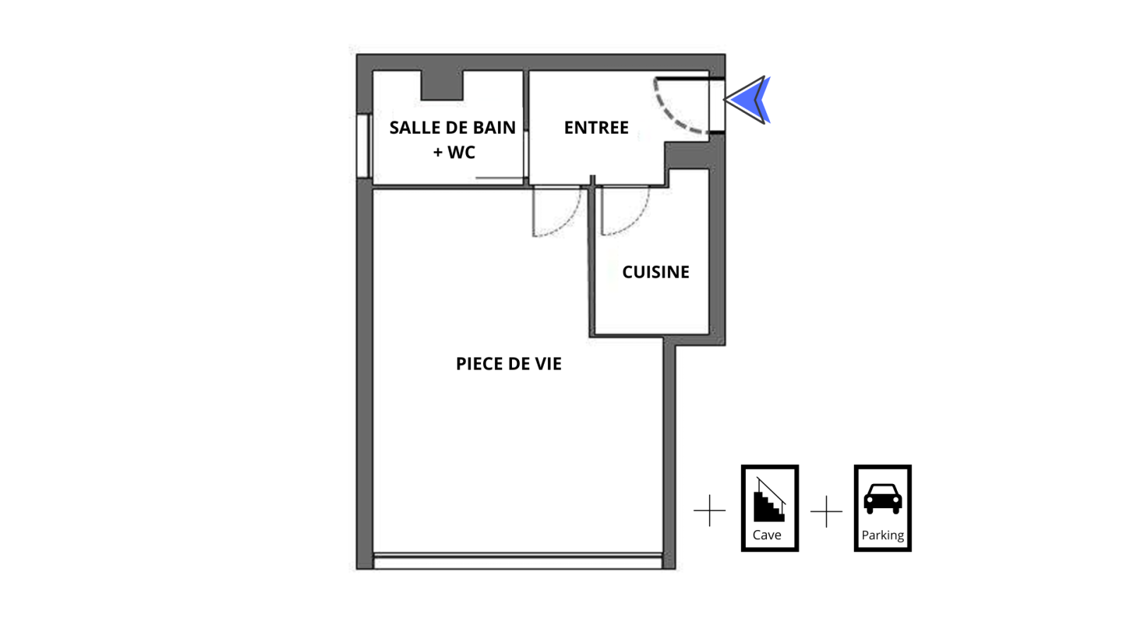 Au rez-de-chausée d'un immeuble avec ascenseur l'appartement est constitué d'une entrée, un séjour, une cuisine, une salle d'eau avec WC.