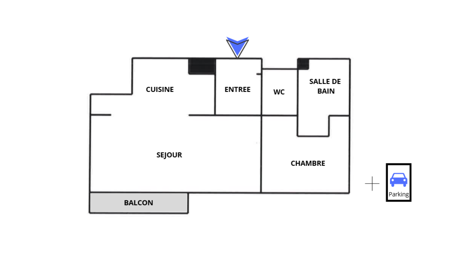 Au 2ème étage d'un immeuble avec ascenseur l'appartement est constitué: d'une entrée, un séjour avec cuisine ouverte donnant sur un balcon, une chambre, une salle de bain est un WC séparé.