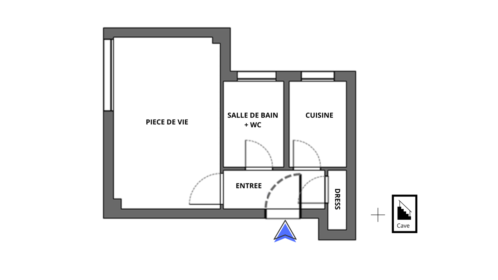 Au rez-de-chaussée d'un immeuble avec ascenseur l'appartement est constitué d'une entrée, une pièce de vie, une cuisine, une salle de bains avec WC.