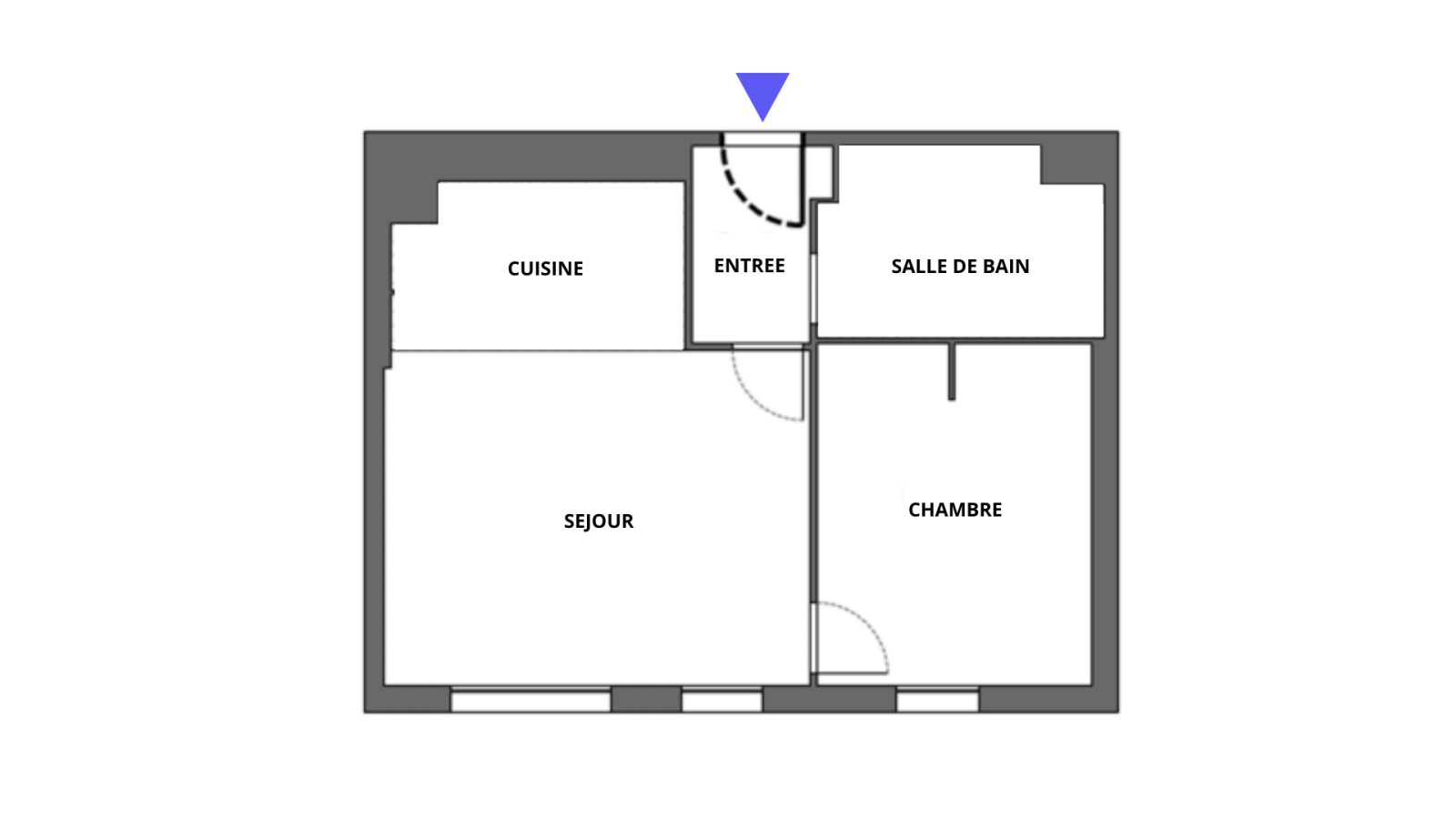 Au 1er étage d'un immeuble avec ascenseur comprenant : une entrée, un séjour, une cuisine équipée, une chambre, une salle de bain avec WC.